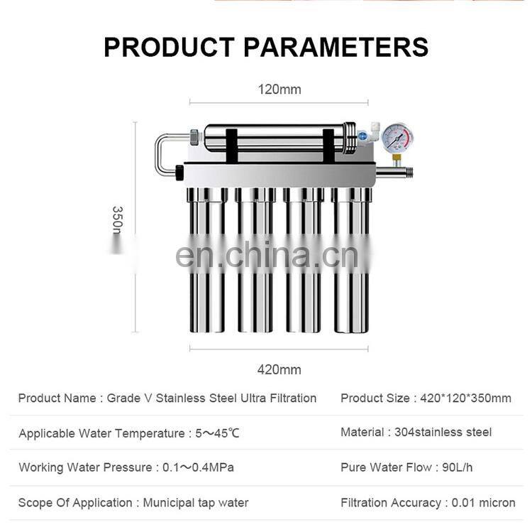 Household 5 Stages UF 304 Stainless Steel UF Water Purifier With Ultra filter Membrane