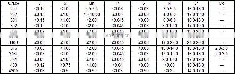 Steel Grade | 301, 410, 316L, 316, 321, 410L, 314, 430, 304L |
