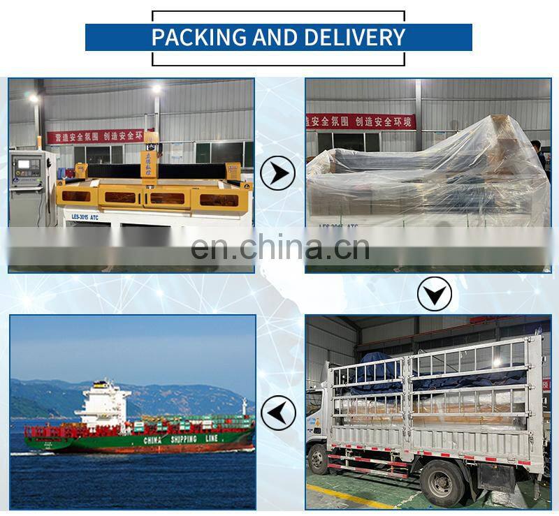 Stone cnc machine including:economical type 3 axis or 4 axis stone engraving machine; 4th axes or 5 axis bridge saw type stone cutting machine; heavy duty 3015 or 3020 kitchen cabinet stone machining center with atc function. All the specifications of machine can customized according customer's needs