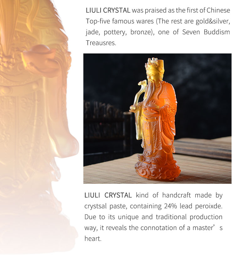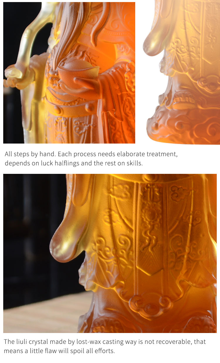 Saint-View is factory directly selling crystal glass liuli by lost-wax casting method, which is also known as pate de verre. Our products including: gift & craft, sculptures, figurines, buddha statues, vases, home decor items, plaque and brick for architecture, etc. We accept OEM&ODM customized production, offer designing, moulding, mass production and fitting solution for personalized cases.