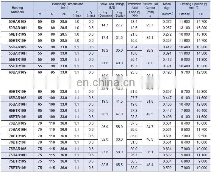 Bearing Model | 100BAR10STYNDBLP4A NSK high speed Angular contact ball bearing |