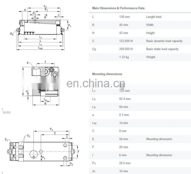 Home > Products > Linear Guide Way > RUSV42126KS Germany Brand Recirculating Linear Roller Block Bearing RUSV42126 RUSV42126-KS