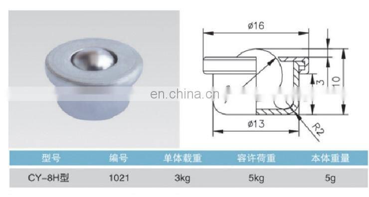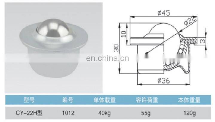 Home > Products > ball transfer unit > Factory Supply CY12H CY-12H Nylon Ball Stainless Steel Universal Ball Transfer Unit