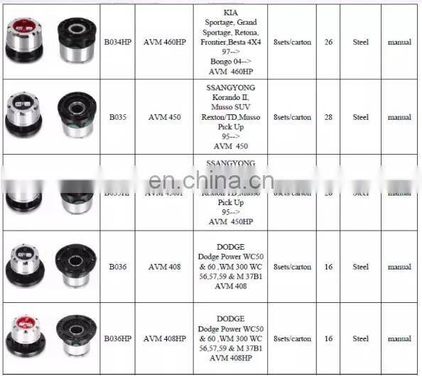 Factory Supply 16 Splines B036HP AVM408HP Manual Free Wheel Hub Bearing for Dodge