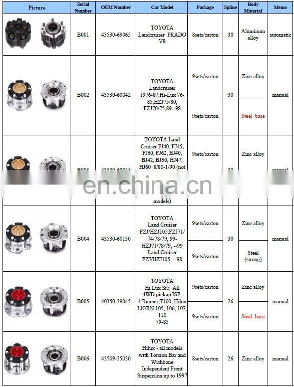 Top Quality 28 Splines Automatic Free Wheel Locking Hubs 40260-1S700 for NISSAN Pickup D22