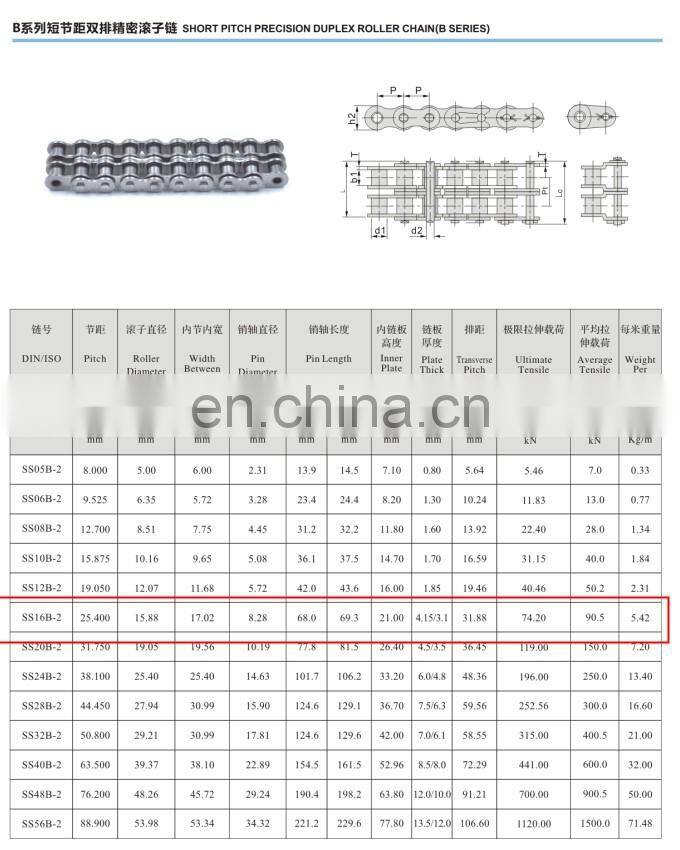 Home > Products > roller chain & sprocket > Factory Supply SUS304 31.75mm Short Pitch Roller Chain SS20B-2 Double Row Stainless Steel Transmission Chain