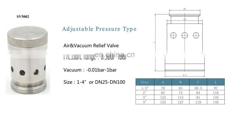 Sanitary Air Pressure Relief Valve Stainless Steel Safety Vacuum & Pressure Relief Valve