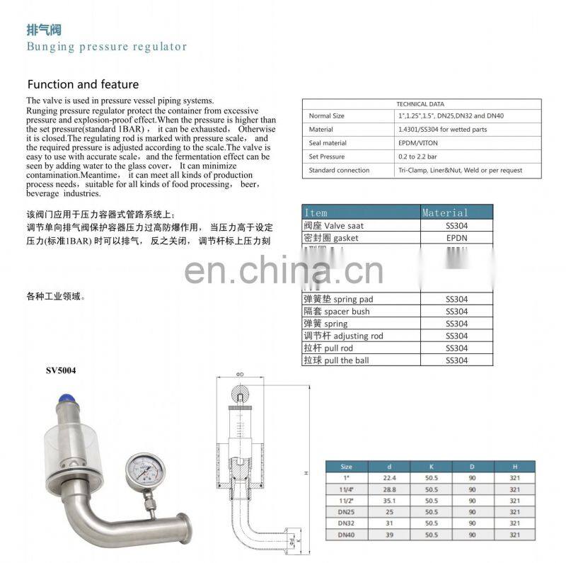 1.5\" Sanitary Stainless Steel Clamp Exhaust Valve With Pressure Gauge Spunding Valve