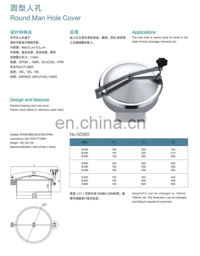 Product Name: | Hygienic Stainless Steel SS304 SS316L Tank Manway Round manhole cover for sale | |||||||||||||||||