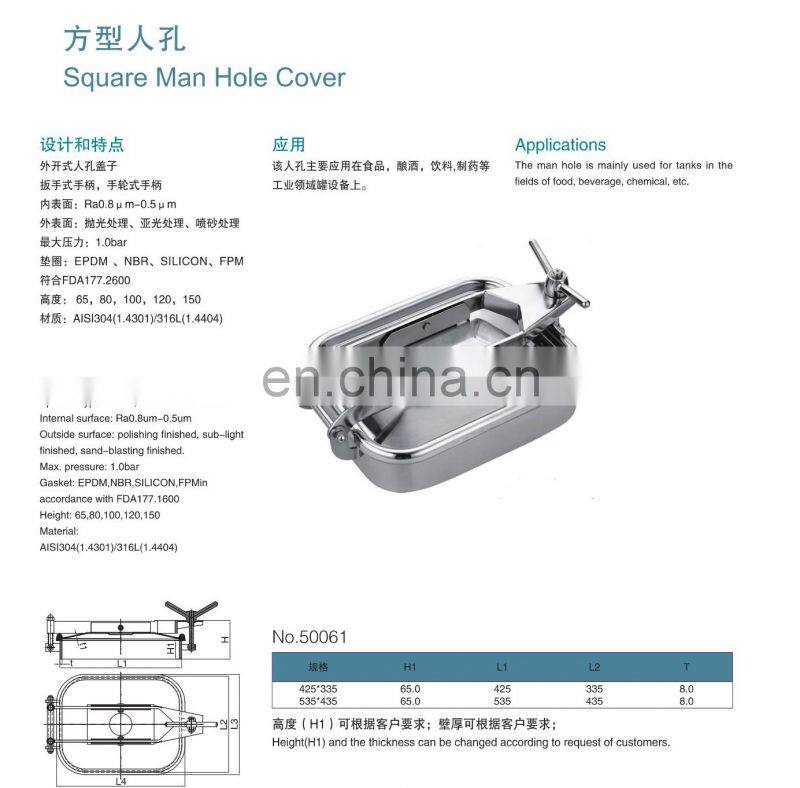 Product Name: | stainless steel hygienic sanitary rectangular square manway cover for tanks | |||||||||||||||||