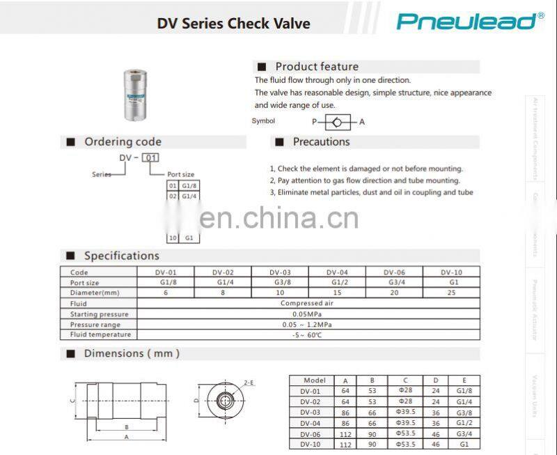 DV Series Check Valve Pneumatic Non-returen Valve