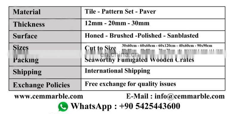 Cem marble offers immediate replies to all enquiries, technical support, reliable inspection, quality control, coordinate production period, fast delivery process and logistic operations for customer. We are here to help you execute your vision and in selecting the right stone and tile materials for your design project, building or warehouse