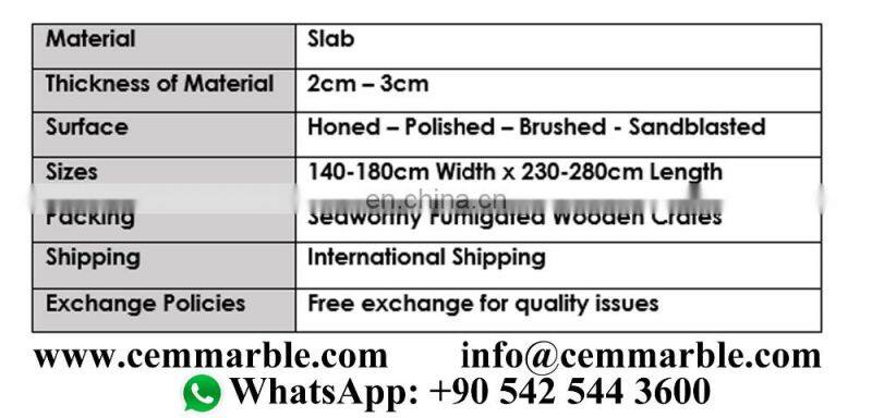 Cem Marble is specialized company about natural stones with dynamic, young and customer focused structure. We know that natural stones have variations and according to this we select natural stones at the request of our customers. At the same time we know that package of natural stone is very important so we do best way packaging. Cem Marble offers direct shipping services to any location worldwide.