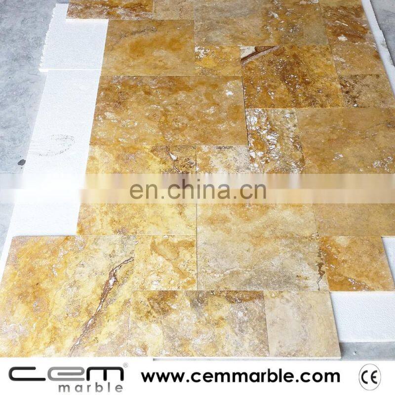 Hot Sale Premium Quality Gold Yellow Travertine Tile French Pattern Set Paver Made in Turkey Cem-FPT-05