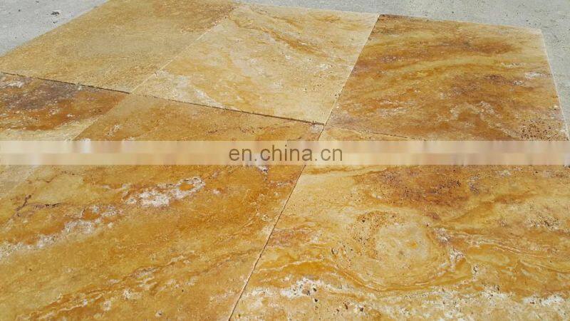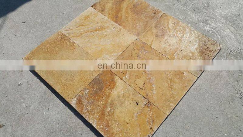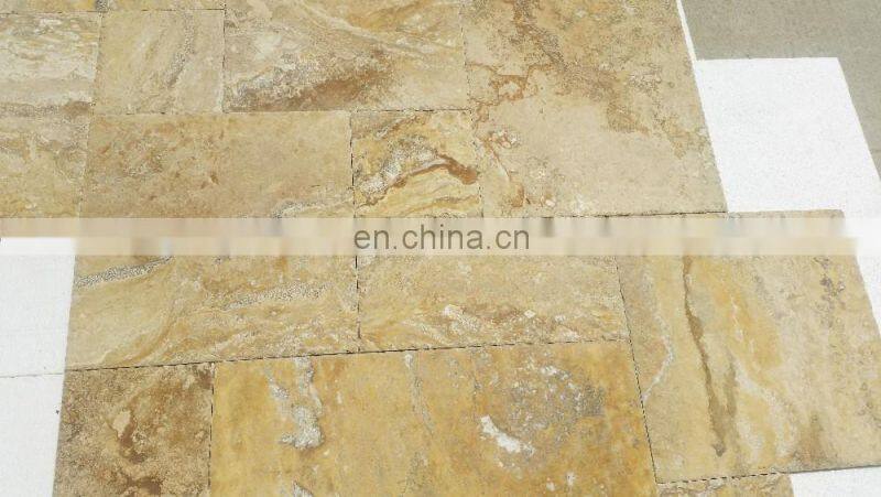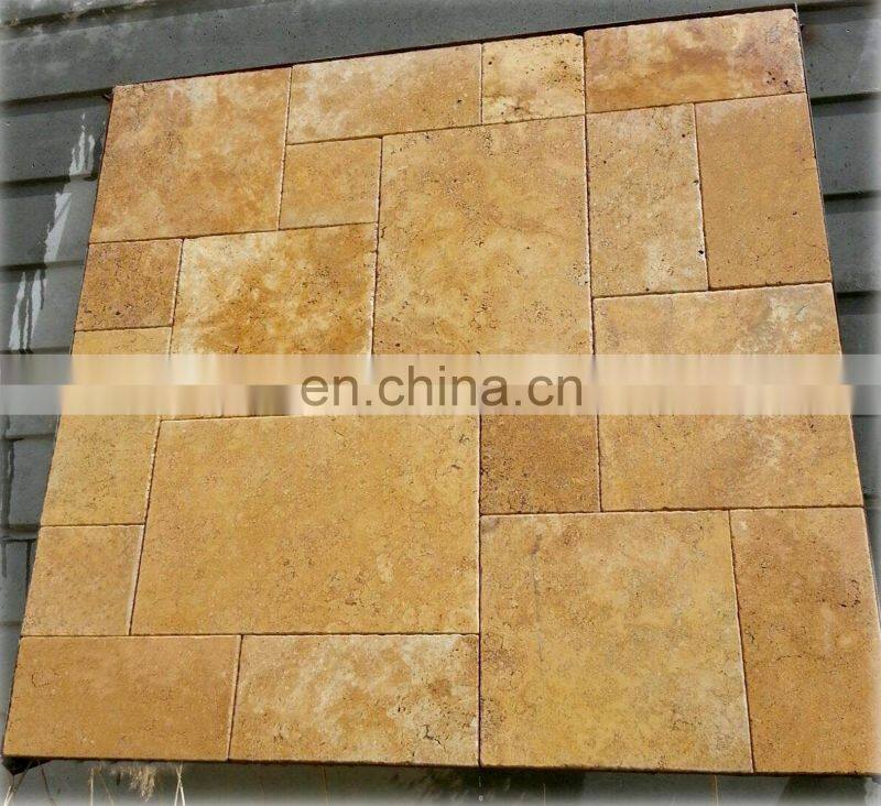 Home > Products > travertine > Hot Sale Premium Quality Gold Yellow Travertine Tile French Pattern Set Paver Made in Turkey Cem-FPT-05