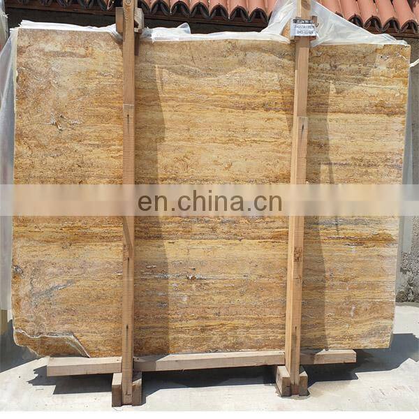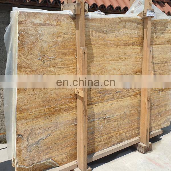 Customized New Arrival Luxury Model Turkey Gold Yellow Travertine Vein Cut Slab or Cut to Size CEM-SLB-05-02