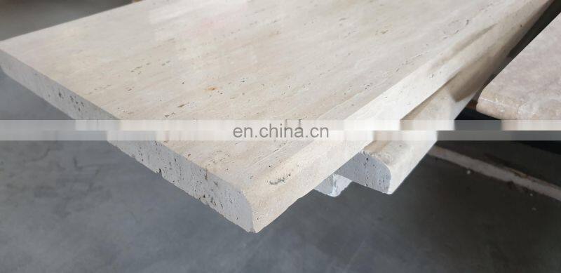 Scabos Travertine Outside Corner Pool Coping Bullnose Tiles Made in Turkey Cem-FPT-05 Outdoor Construction Projects