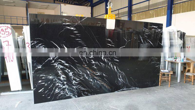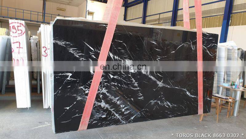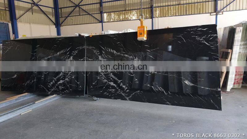 Premium Selection Quality New Arrival 2cm Thick Nero Marquina Toros Black Marble Slabs Made in Turkey Factory CEM-P-43