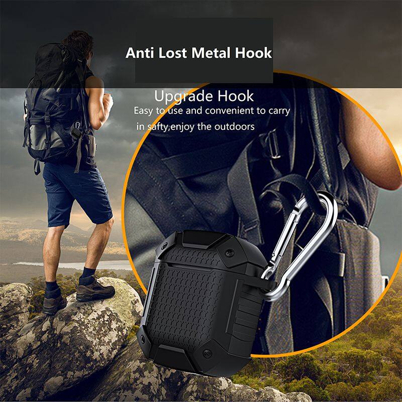 Rugged Skin Armor Shockproof TPU PC Earphone Cases Anti-Knock Protective Silicone Cover with Carabiner for Airpods pro cases