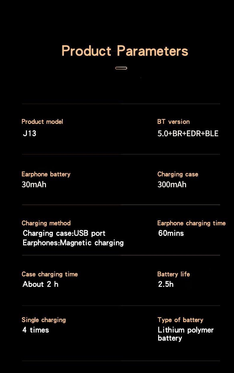 Mini Wireless Earphone Rechargeable 50 Hours Standby Time Earphone J68 Earphone With Display Screen