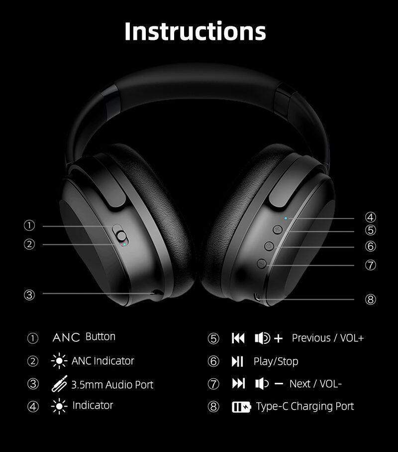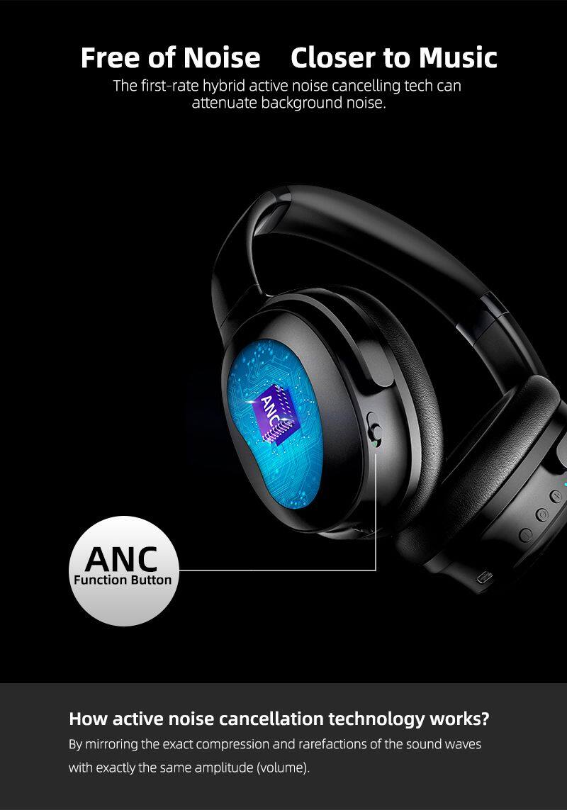 Gaming Wireless Headset Active Noise Cancelling Stereo Earphone Type c Audifonos Para PC