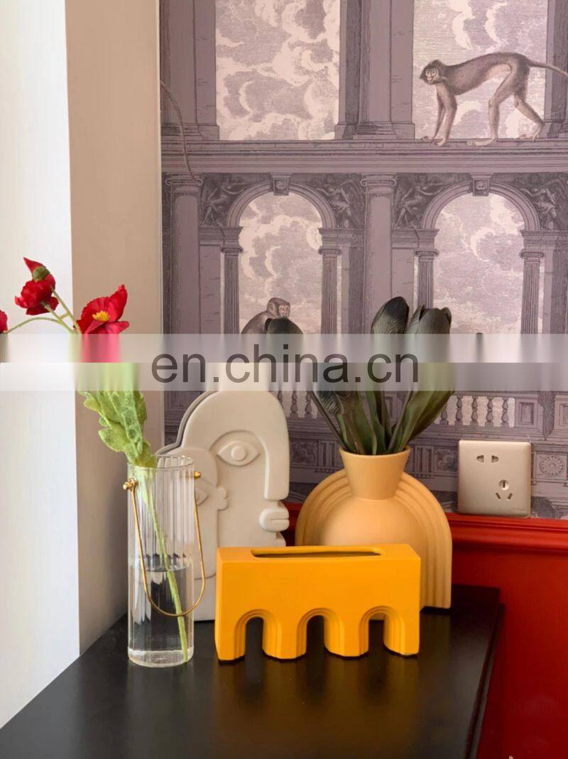 Wholesale Nordic Ceramic Vase White Human Face Sculpture Art Matte Adornos Ceramic Flower Vase Home Decor
