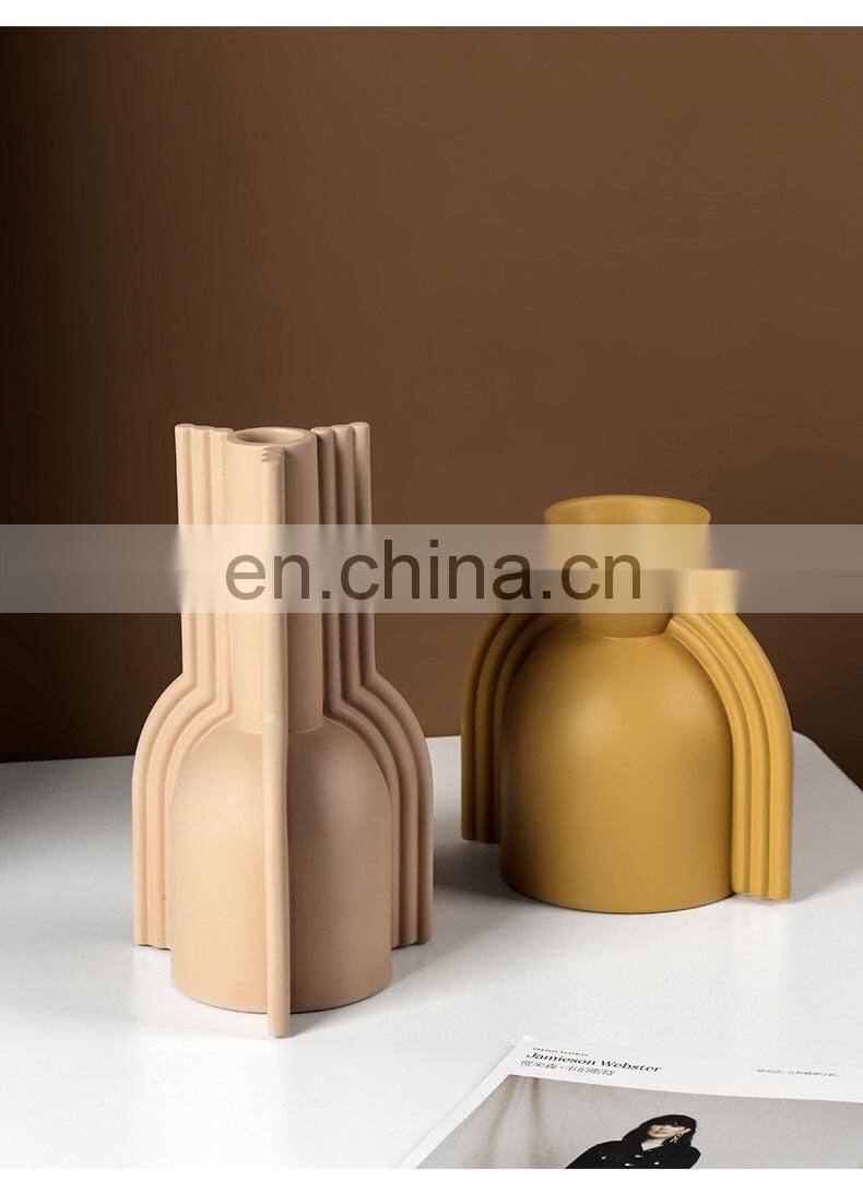 Morden Creative White Vase Geometry Ornaments Decorative Brown Jarrones Decorativos Creamic Flower Vase For Home Decor
