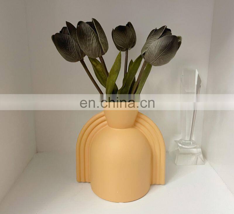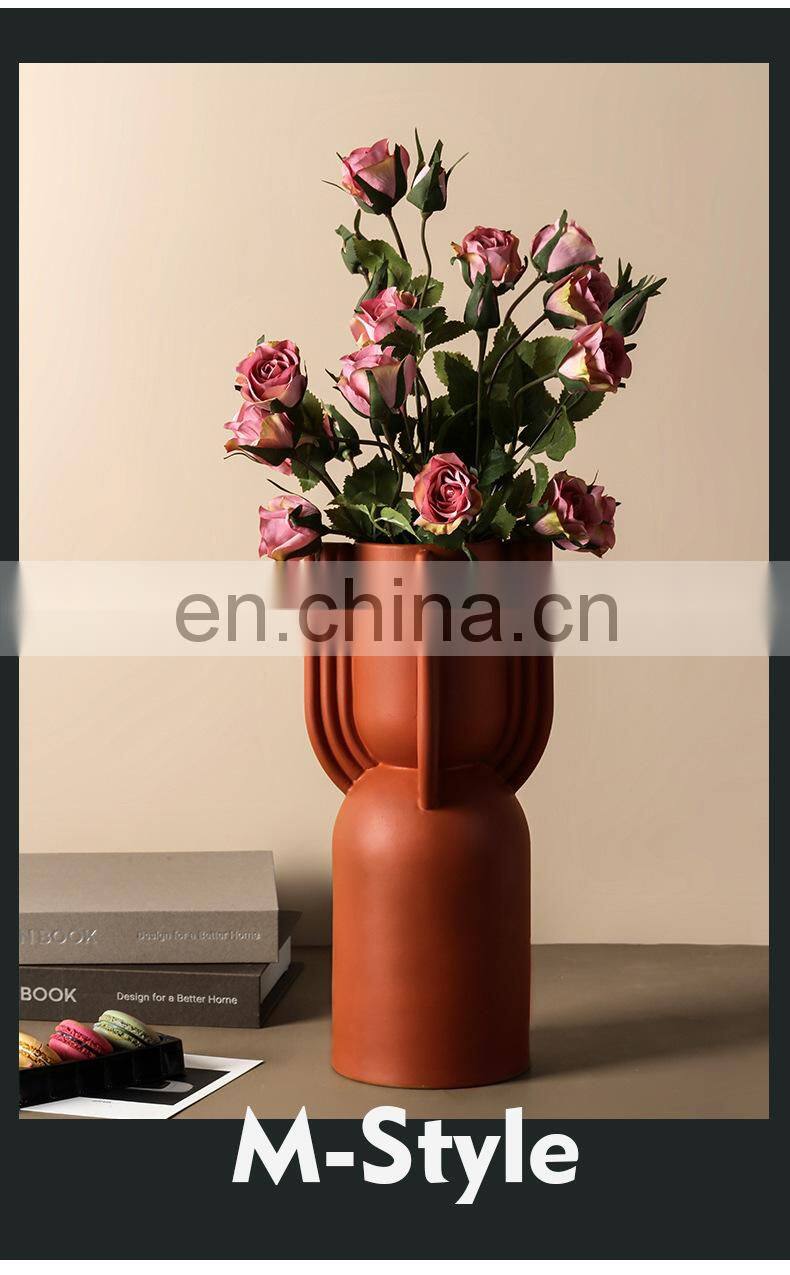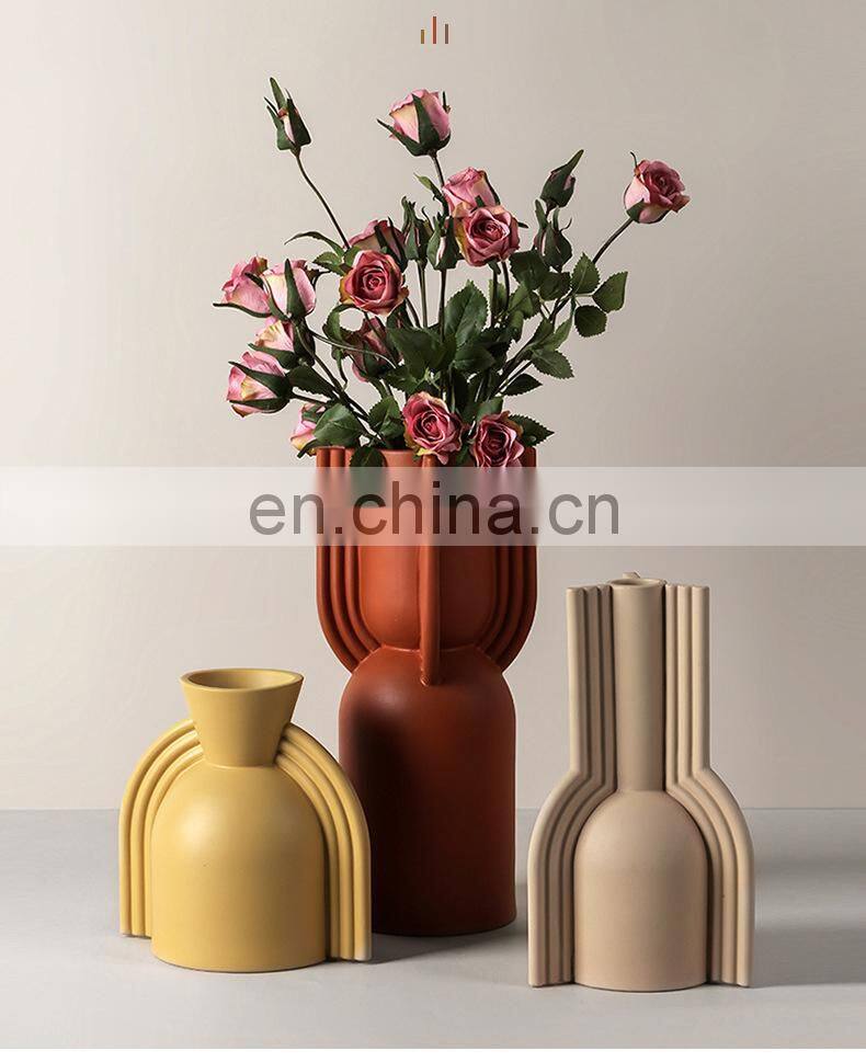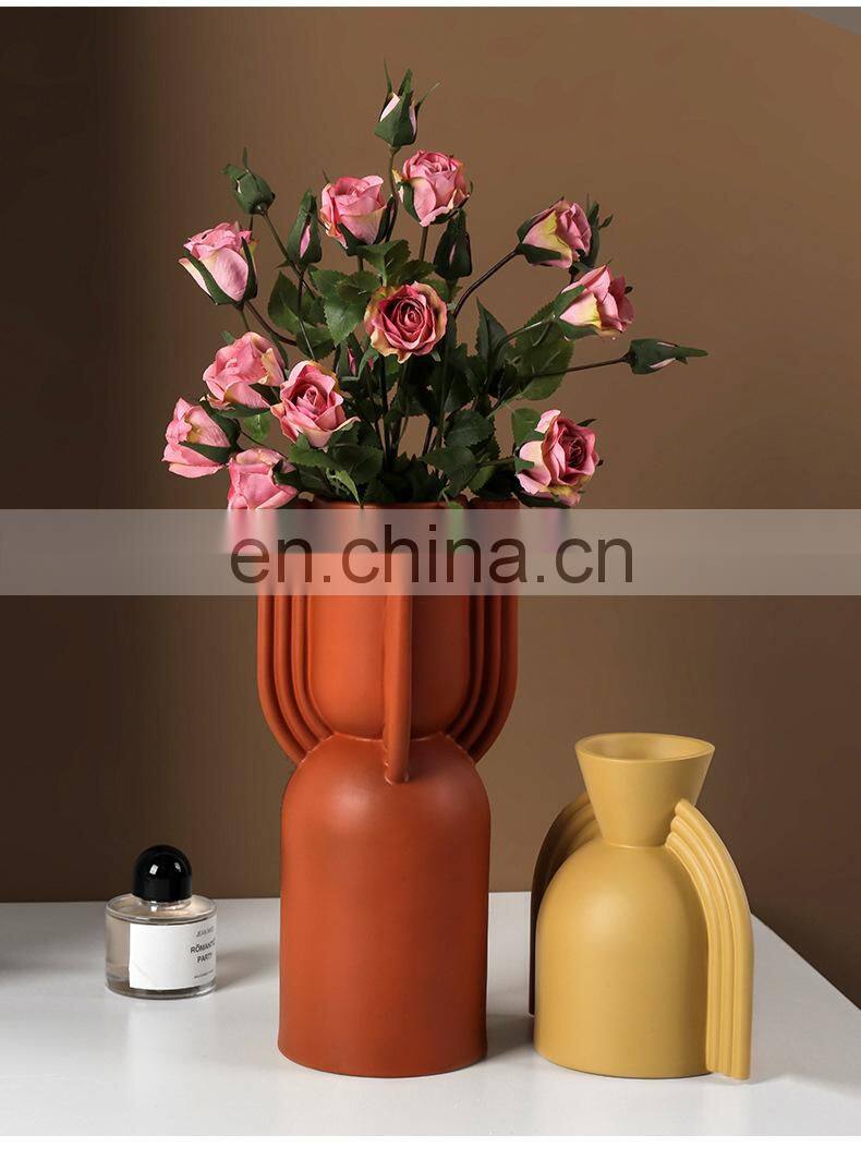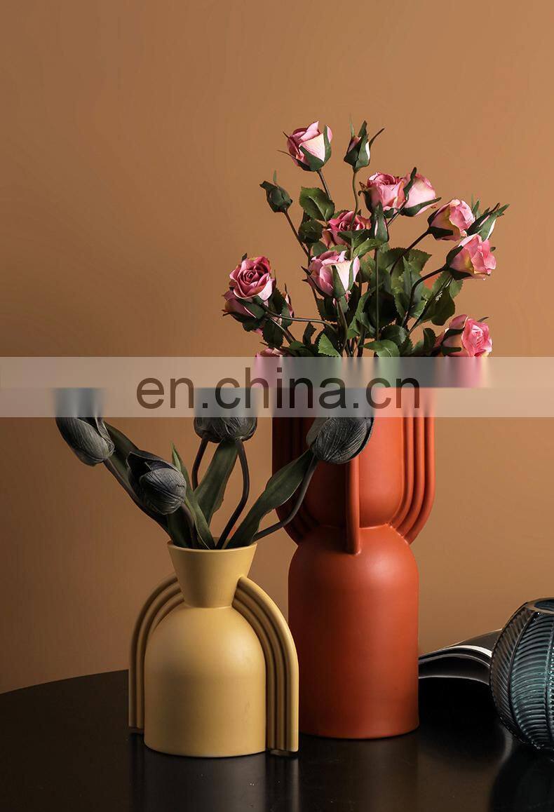 Nordic Amphora Art Geometric Yellow Pink Red Turkish Vase Ceramic Flower Vase With Earring For Dekoration Wohnzimm Home Decor