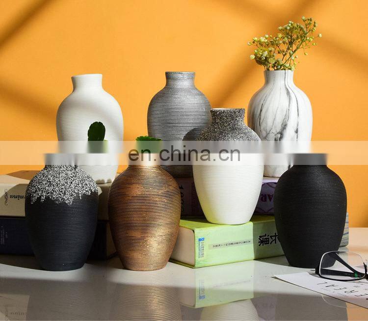 Nordic Simple Custom Vase Decoracao De Casamento Marble Vase Gold Silver Ceramic Vase Dried Flower Arrangement For Home Decor