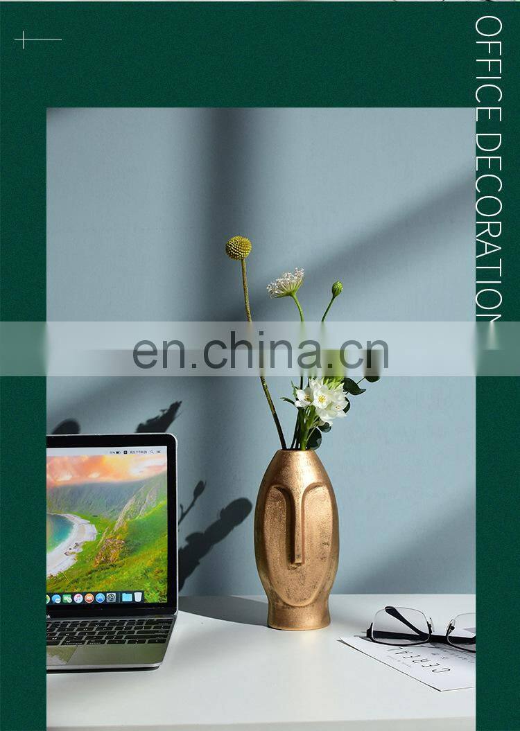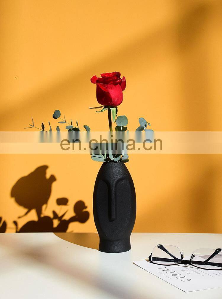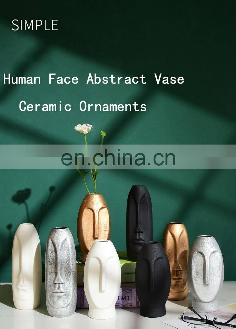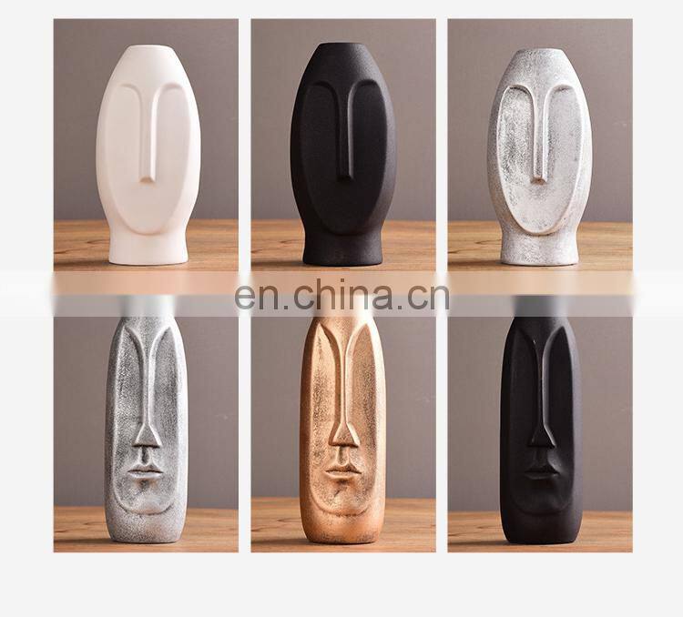 Nordic Simple Abstract Vase Human Face Ceramic Ornaments Matte Black Silver Gold Ceramic Vase For Decoracion De Hogar Home Decor