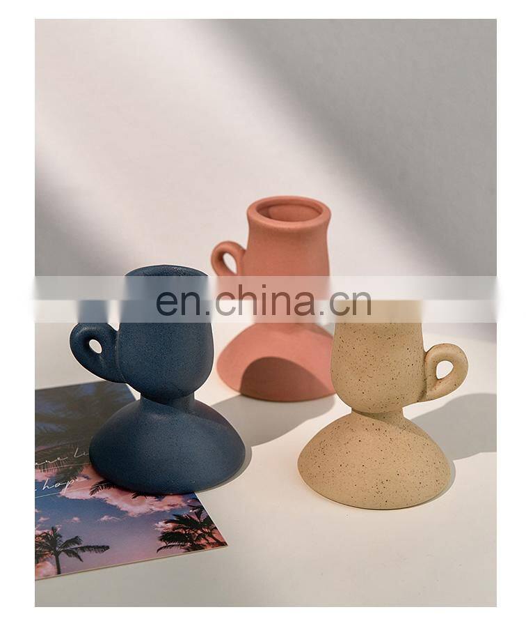 Nordic Decorative Cheap Handmade Vase Wedding Candle Holder Art Irregular Flower Plain Pottery Ceramic Vase