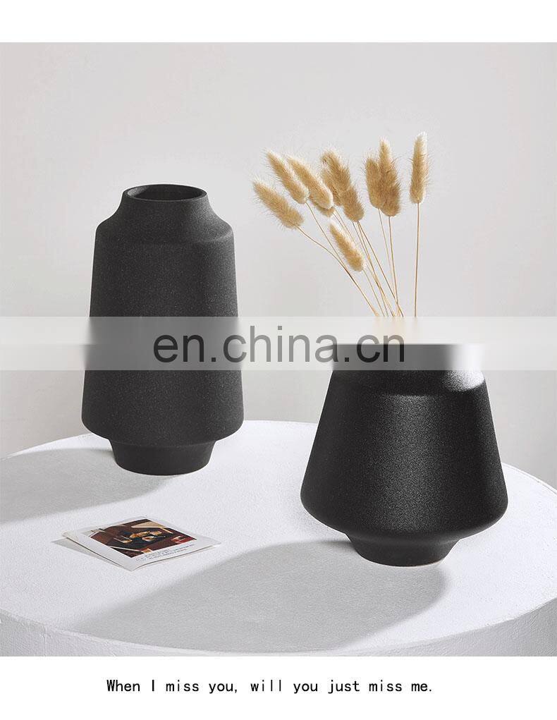Modern Nordic Chinese Vase Matte Floor Porch Dry Flower Ikebana Vase Tabletop Vaso Ceramic Vase Black For Home Decor