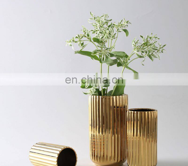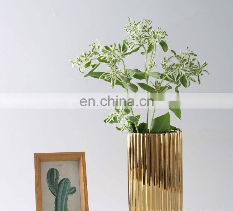 Minimalist Creative Nordic Gold Plated Marble Flower Household Ornaments Ceramic Vase For Home Decor