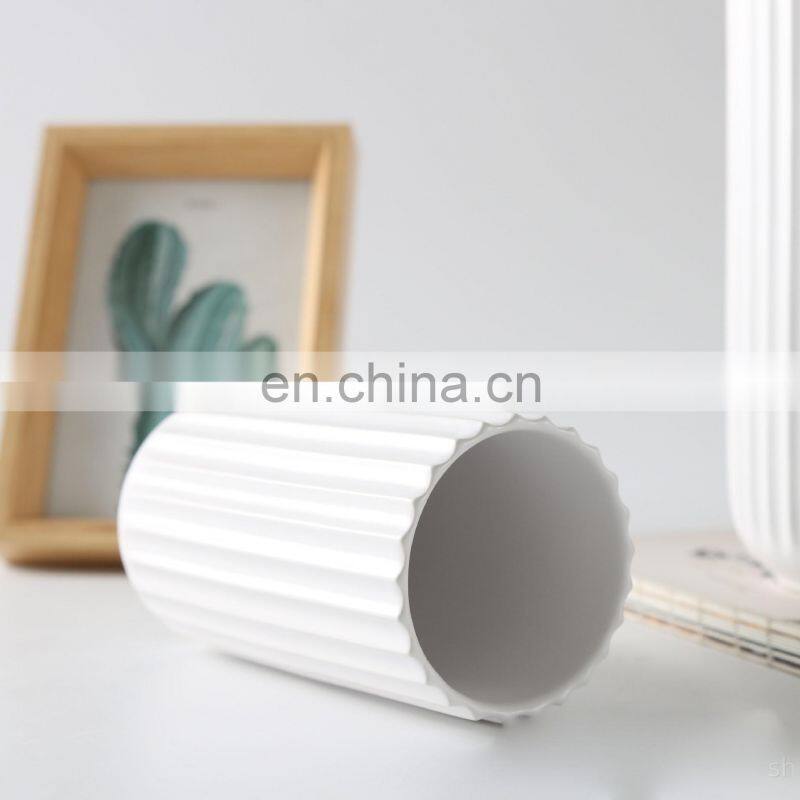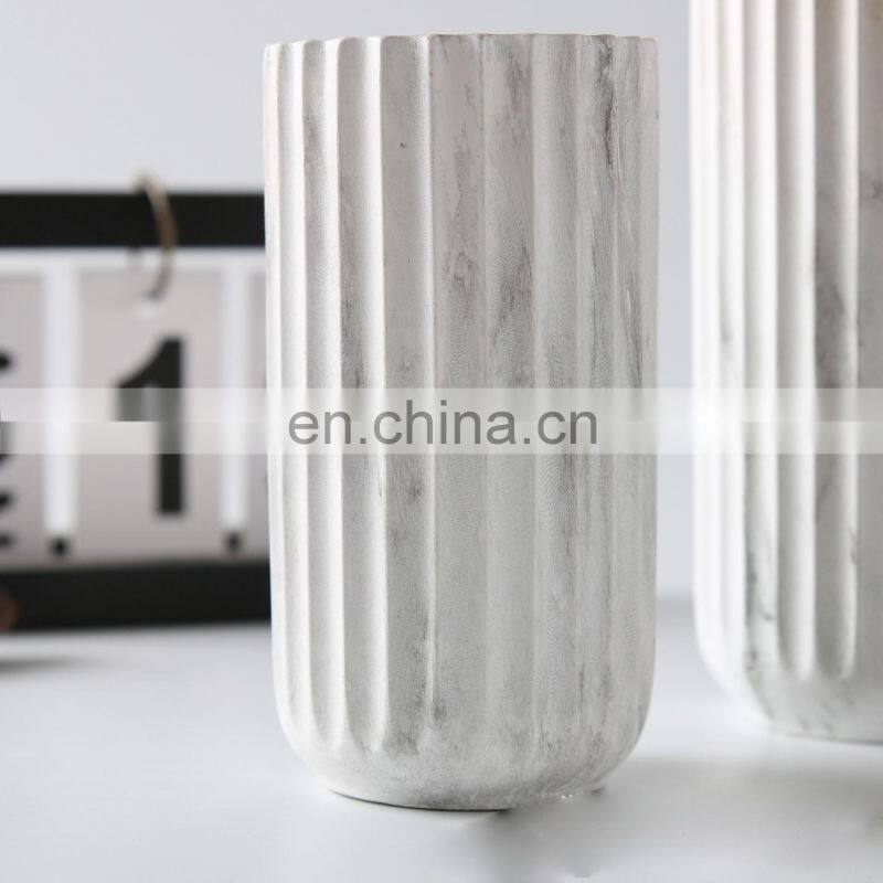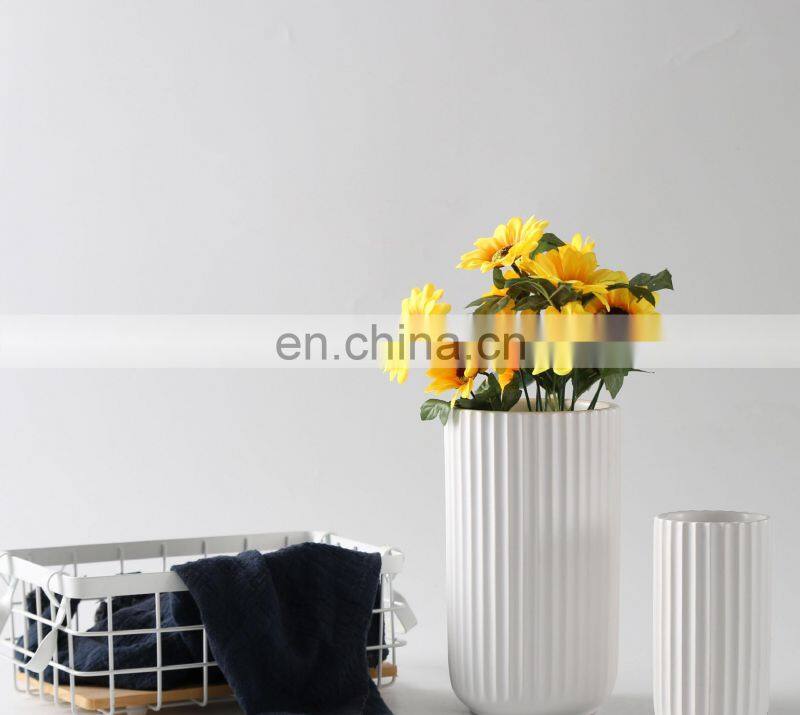 Wholesale Creative Special-Shaped Vertical Pattern Nordic Modern 7-Inch Vase Ceramic For Home Wedding Decor