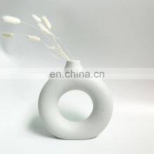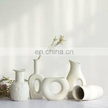 Drop Shipping Modern Decorative Handmade Art Porcelain White Round Ceramic Irregular Flower Vase Nordic