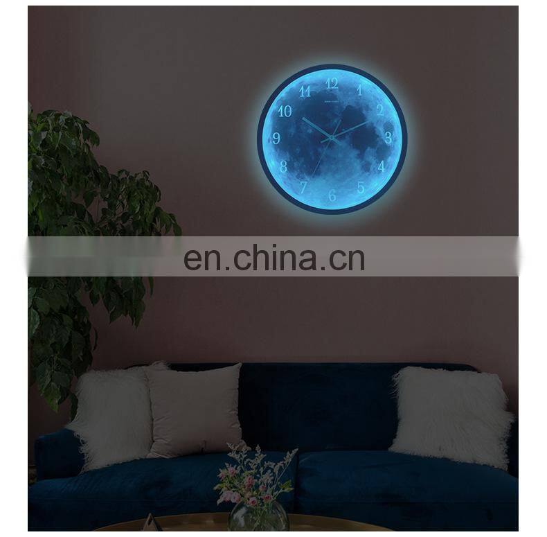 Home > Products > Home Decoration > Hot Selling Multi-Color Selection Multifunctional Galaxy Blue Earth Moon Luminous Voice Controlled Brand Wall Clock