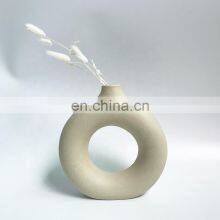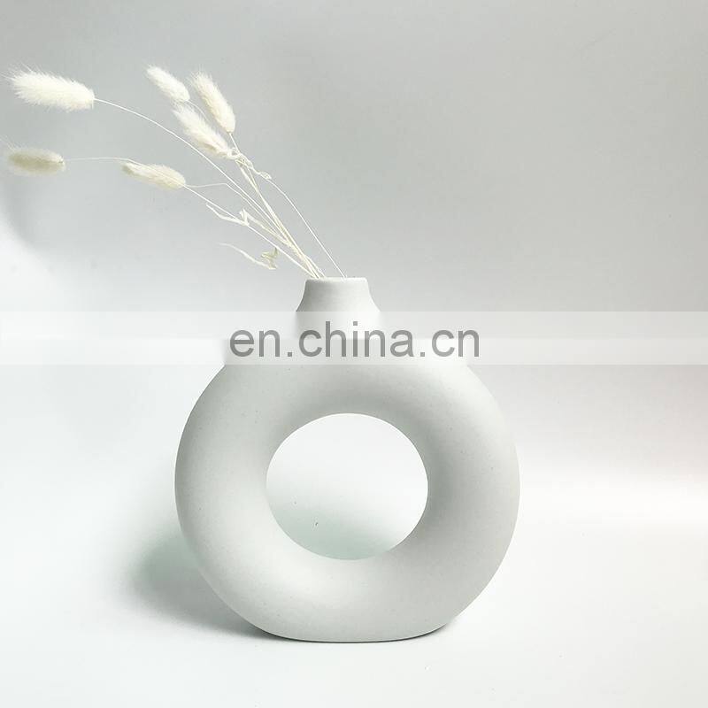 Modern Decorative Handmade Art Porcelain White Round Ceramic Irregular Flower Vase Nordic