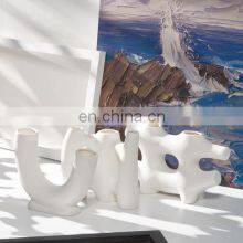 Modern Decorative Handmade Wedding Art Porcelain Matte White Creative Ceramic Pot Irregular Flower Vase Nordic Home Decoration
