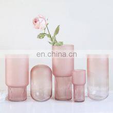 Modern Wholesale Nordic Handmade Clear Pink Cylinder Stripe Flower Frosted Crystal Glass Vase Wedding Decoration Modern Vase