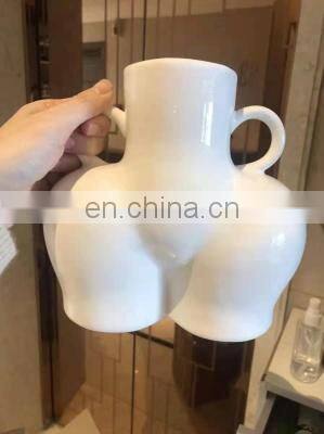 Modern Decorative Handmade Art Porcelain Matte White Creative Body Shape Pot Irregular Flower Ceramic Vase Nordic