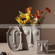 Nordic INS Style Figurines Frosted Creative Face Design Model Home Decorative Ornament Abstract Ceramic Flower Vase