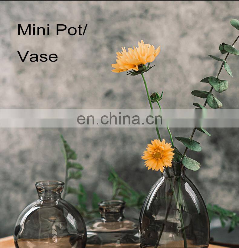 Tabletop Decoration Wholesale Nordic Home Wedding Creative Unique Mini Pot Set Decorative Flower Bottle Glass Vase