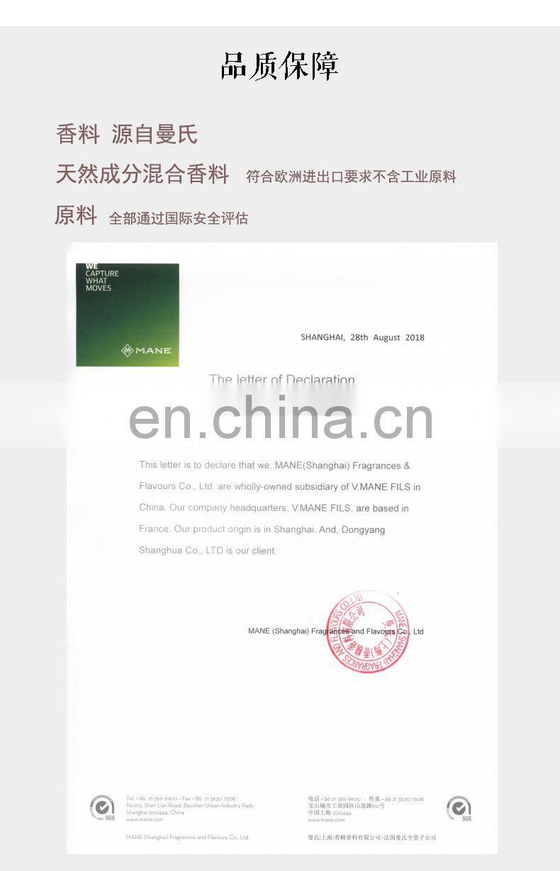 And we use 100% natural soybean wax and best perfume or our natural essential oil.