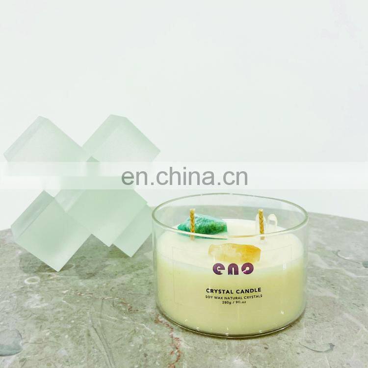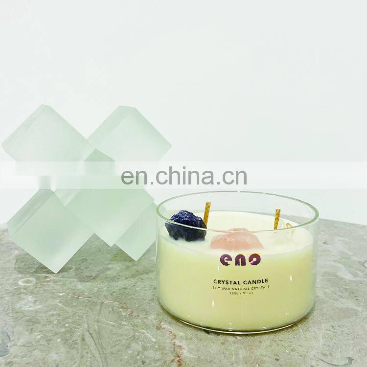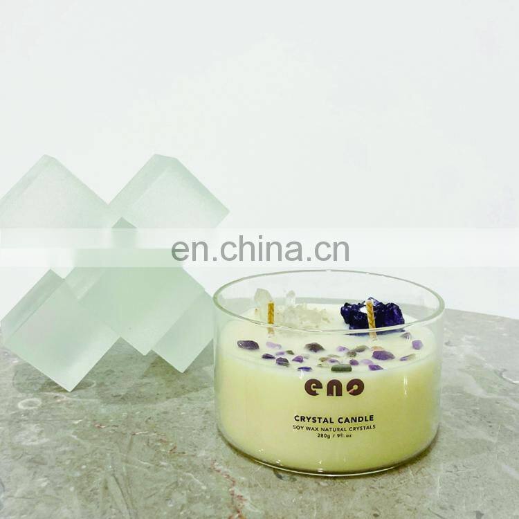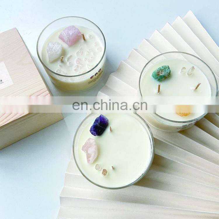 Private Label Custom Home Decoration Healing Crystal Used Luxury Glass Candle Jars Soy Wax Scented Candles With Lid