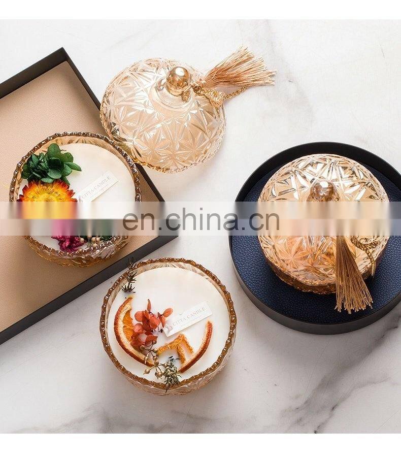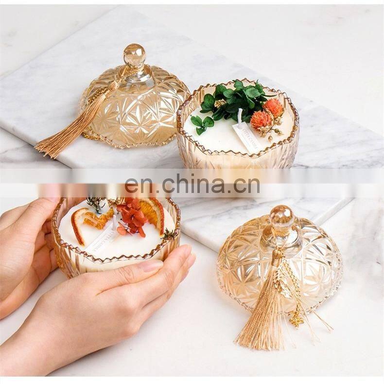 Private Label Custom Home Decoration Healing Crystal Used Luxury Glass Candle Jars Soy Wax Scented Candles With Lid