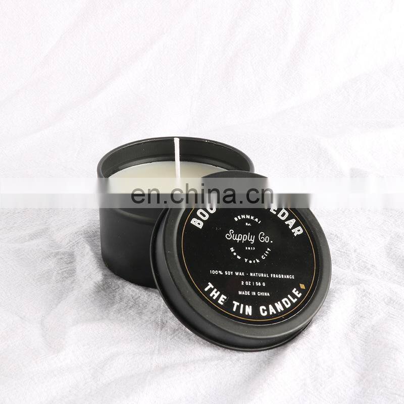 Home > Products > ENO Scented Candles > Wholesale Luxury Aromatherapy Fragrance Small Mini Black Tin Jar Soy Wax Scented Candle