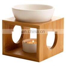Wooden Essential Oil Burner Scented Wax Melt Burner With Candle Holder Aromatherapy Bamboo Essential Oil Burner