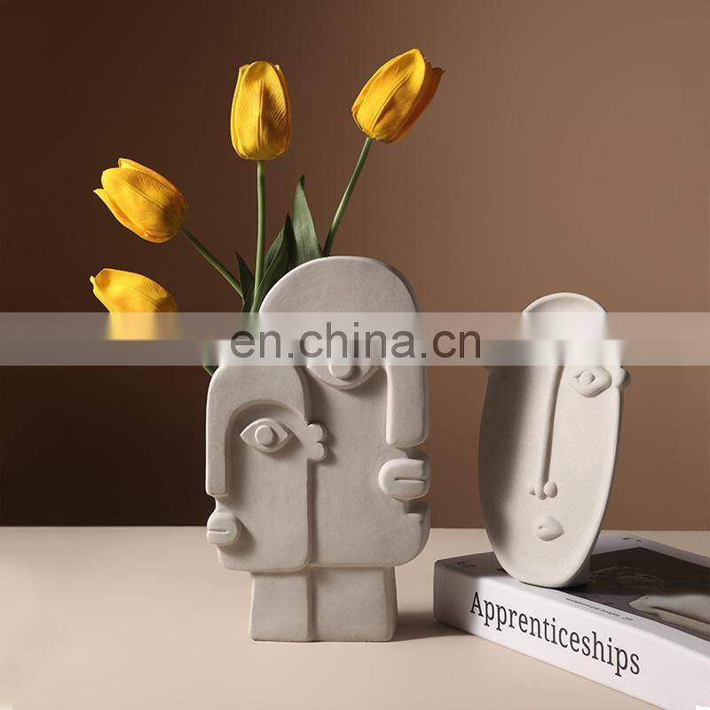 Home > Products > ENO-Home Decor > Nordic Abstract Face Vase Ins Wine Cabinet Dining Table Ceramic Porcelain Vases for Home Decor Craft Decoration