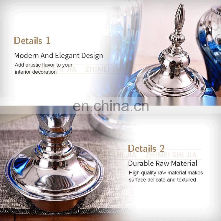 Home Decoration Ornament Tall Green Silver Lid Ceramic Porcelain Vase
