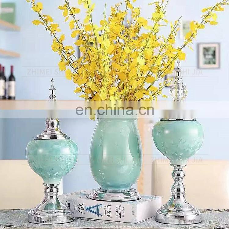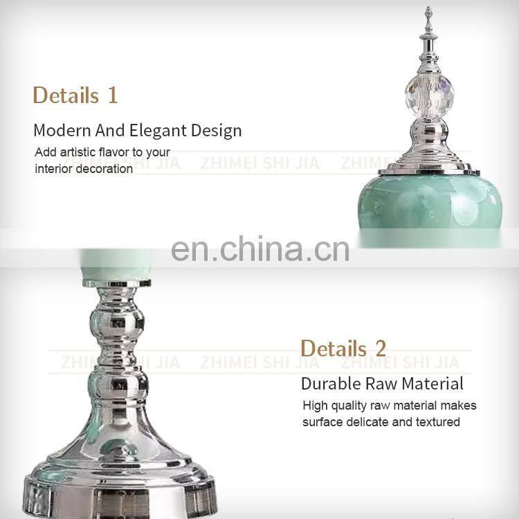 Home > Products > Flower Vase > Home Decoration Ornament Tall Green Silver Lid Ceramic Porcelain Vase